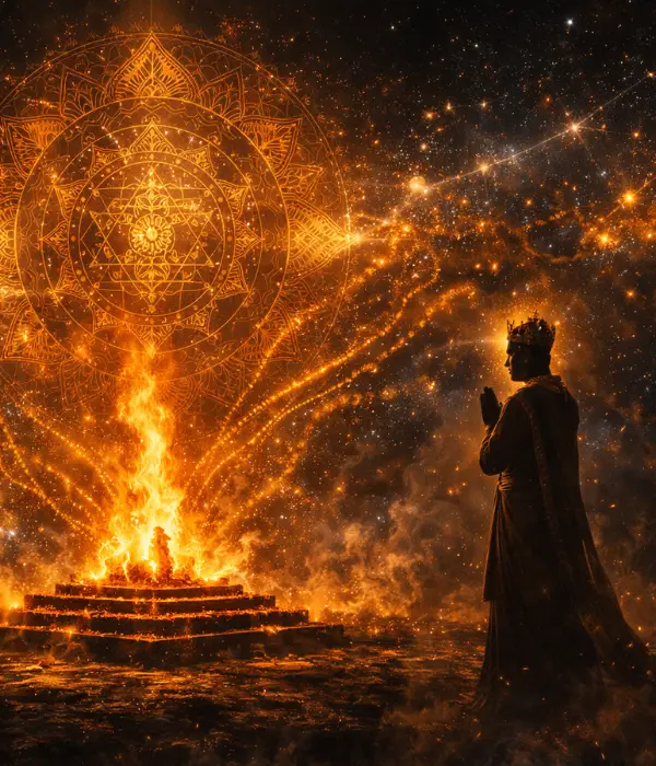 The Rajsuya Maha Yagna signifies divine kingship, dharmic authority, and spiritual alignment between human leadership and cosmic order.