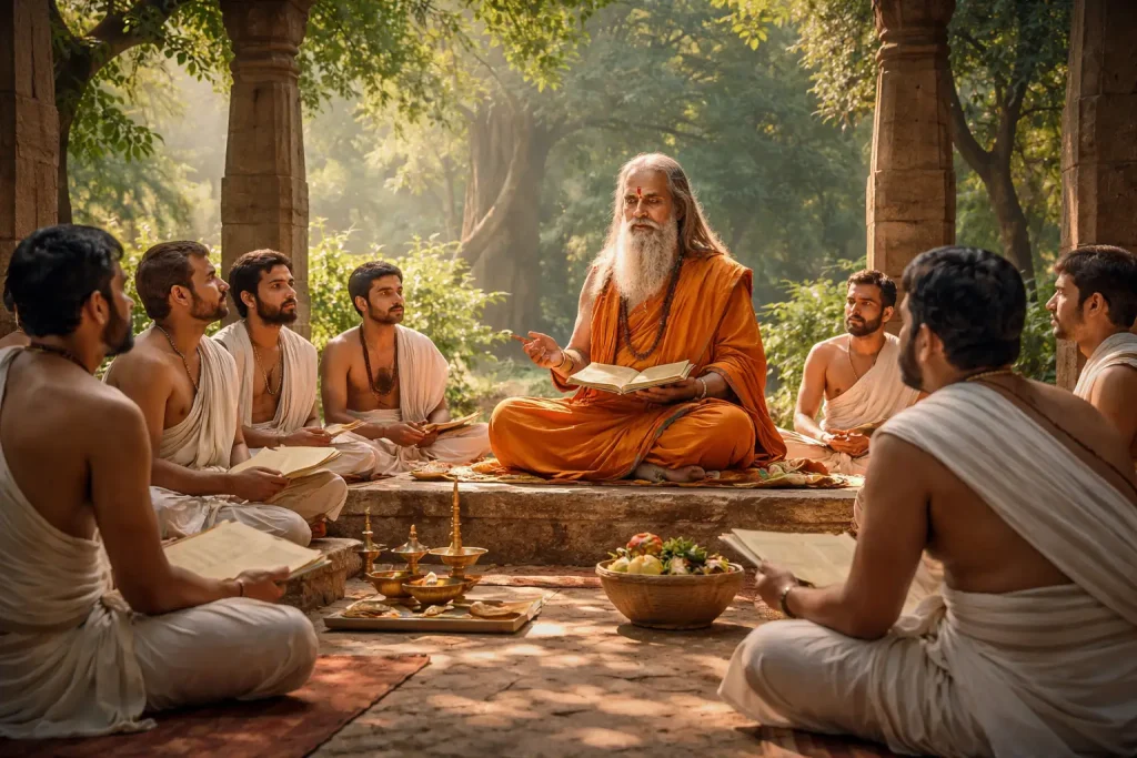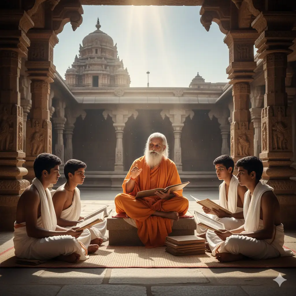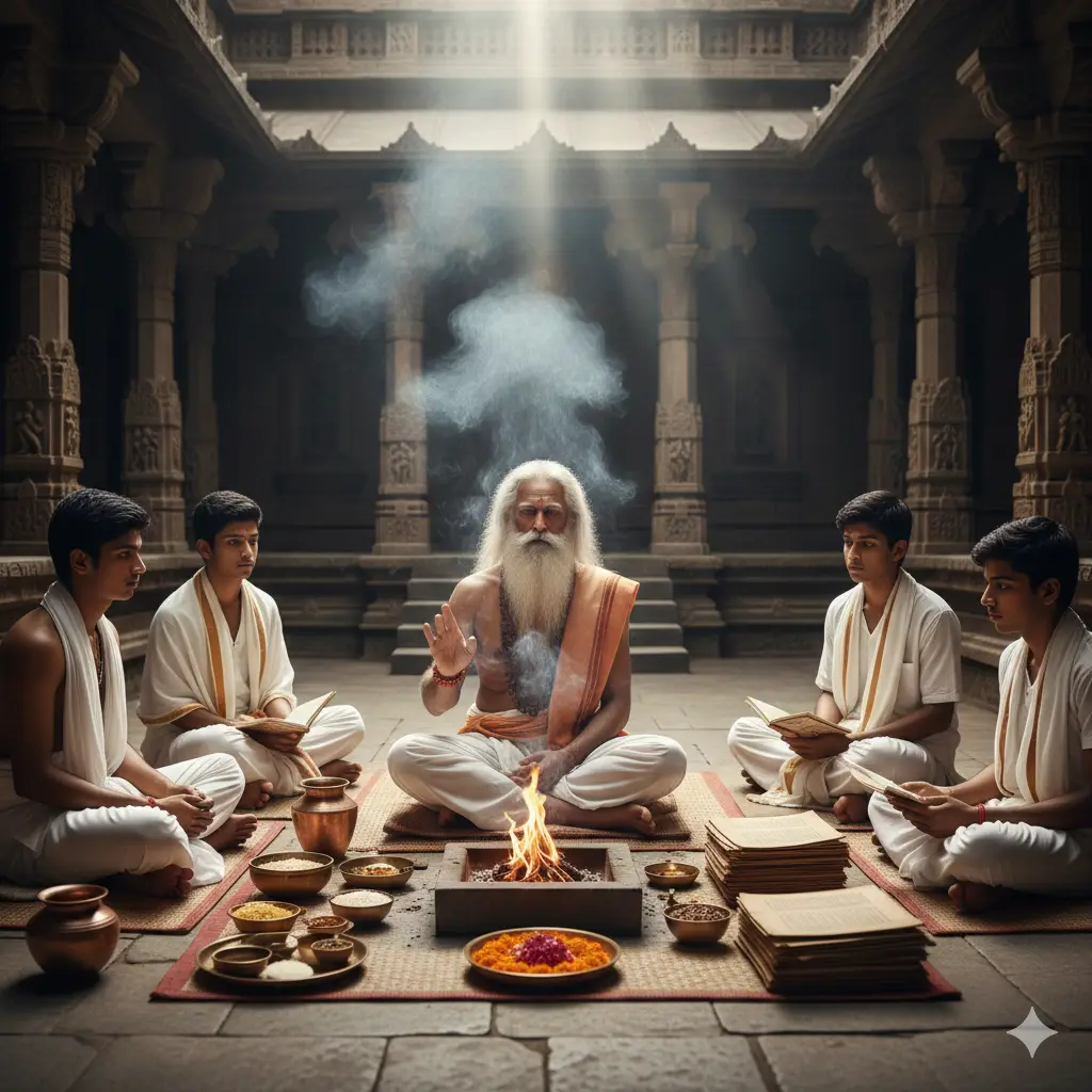 Parampara embodies the sacred teacher-disciple tradition, emphasizing oral transmission and practical learning of Vedic knowledge. Students live alongside Acharyas, observing rituals, ethics, and daily discipline, absorbing wisdom through direct experience. This immersive system ensures the flawless performance of rituals, mastery of mantras, and internalization of dharmic principles. By maintaining a living connection to ancient teachings, Parampara strengthens spiritual understanding, cultivates devotion, and preserves the integrity of ceremonies like the Rajsuya Maha Yagna, allowing Vedic knowledge to flourish seamlessly across generations.