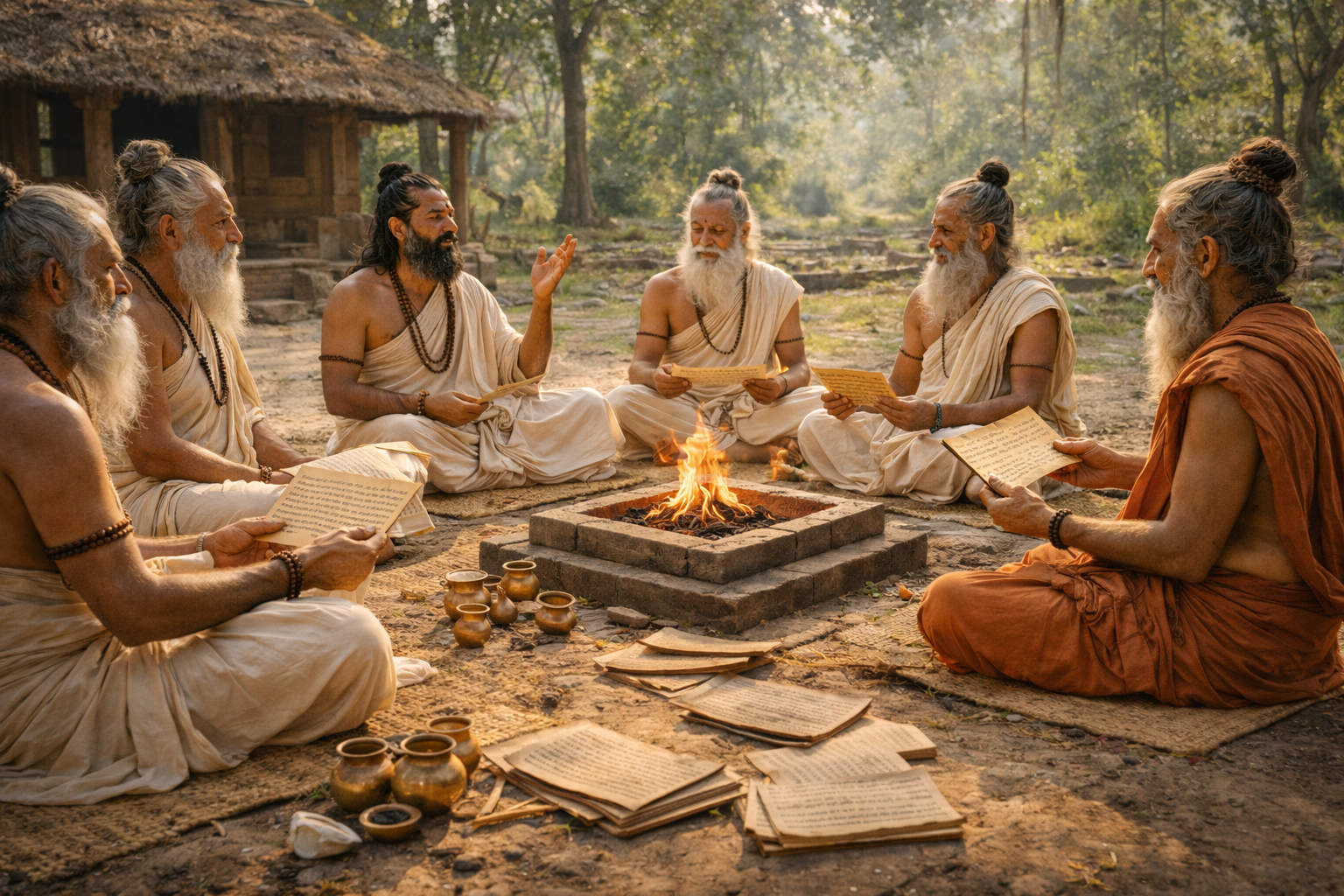 An esteemed Acharya interpreting Vedic philosophy and dharma, guiding participants to understand the deeper spiritual purpose beyond ritual observance.